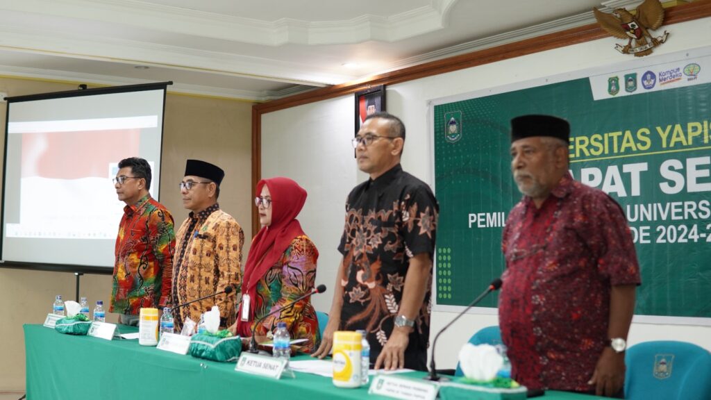 Jayapura – Perhelatan akbar, pesta demokrasi di Lingkungan Universitas YAPIS Papua (UNIYAP), resmi berakhir pada 5 Juli 2024 setelah Badan Pengurus Harian Yayasan Pendidikan Islam (YAPIS) Pusat di Tanah Papua menerima surat dari Senat Uniyap. Surat bernomor 21/Lpr-02/SA/VII/2024, Pemberitahuan Hasil pemilihan Rektor Universitas YAPIS Papua Periode 2024-2028 tersebut tertanggal 5 Juli 2024 M/28 Dzulhijjah 1445 H.